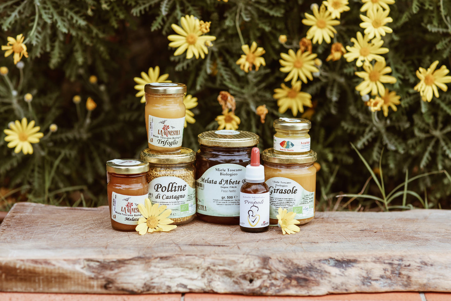 At La Ginestra, we raise and protect around 700 beehives of Apis Mellifera Ligustica bee's. Using an organic method which respects the natural rhythm and needs of this wonderful insect, we see them thrive. We practice nomadism in Tuscany to allow our bees to find uncontaminated areas and abundant blooms. This means that each season we can produce a variety of honey's from various wildflowers including ,acacia, chestnut, sulla, clover, sunflower, lavender, honeydew and coriander. At La Ginestra we breed our own queen bee's! Additionally we produce organic pollen, propolis and wax. Our vision focuses on the preservation and health of the hives.
